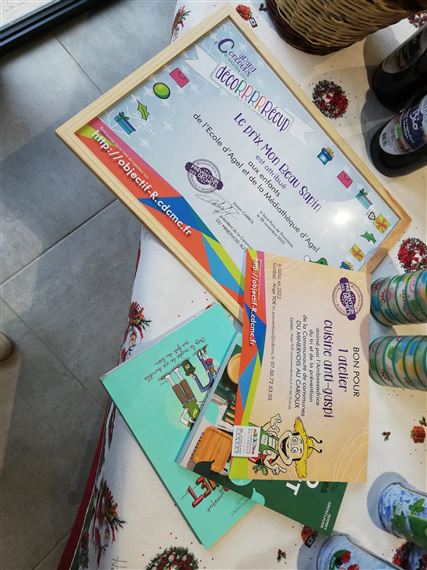 Les élèves de l'école d'Agel ont reçu vendredi 16 décembre, le prix 'Mon Beau Sapin' pour leur participation au concours #decoRRRRRecup durant leur temps de médiathèque.